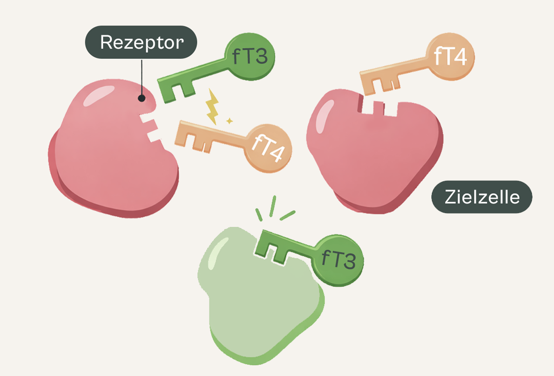 Ist zu wenig T3 vorhanden, dann werden die Zellen weniger aktiviert und es bleiben Symptome bestehen.