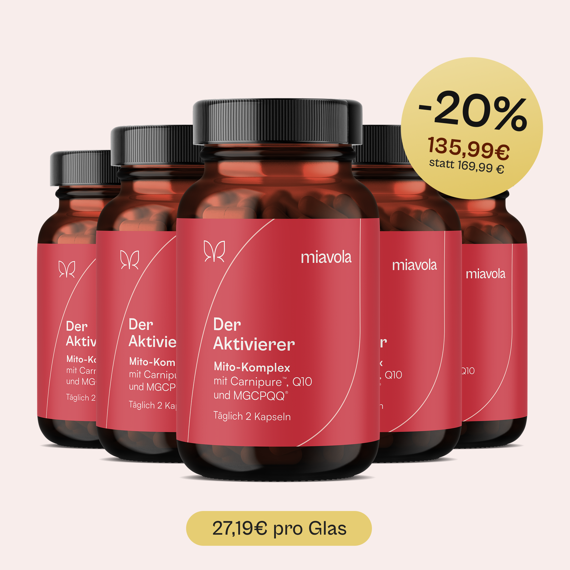 Der Aktivierer unterstützt dich dort, wo Energie entsteht: im Energiestoffwechsel. B-Vitamine und Magnesium tragen zu einem normalen Energiestoffwechsel bei, Magnesium sowie ausgewählte B-Vitamine zudem zur Verringerung von Müdigkeit und Ermüdung. Vitamin E und Selen tragen dazu bei, die Zellen vor oxidativem Stress zu schützen – ergänzt durch eine durchdachte Formel aus Q10 (Ubiquinol), L-Carnitin, Urolithin A, PQQ und Pflanzenextrakten, damit du nicht mehrere Einzelprodukte kombinieren musst.